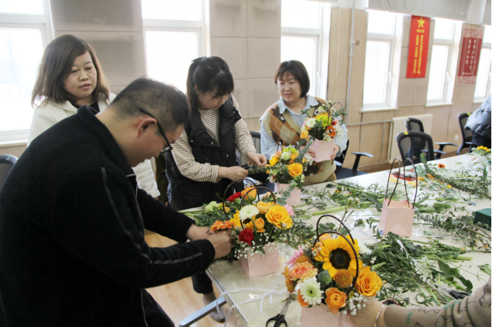 “学院工会今年‘三八’活动形式非常新颖,和同事们一起学习花艺,感觉在紧凑的教学工作中那份紧张的心情得到了放松,感觉很温馨。”现代服务系教师常薇说。