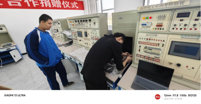 为深入贯彻落实习近平总书记关于大力发展技工教育和技能人才工作重要指示精神,学院积极践行央企职业学校的社会责任,与新疆泽普县技工学校签订“校校合作”协议并捐赠价值60万元的高级电工实训考核设备。2024 年 11 月 2 日至11月7日,学院委派工业自动化系骨干教师强勤磊、魏啸桐肩负使命远赴新疆喀什地区泽普县开展援疆助学工作。