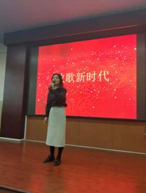 在弘扬传统文化环节里,现代服务系团总支选送的礼仪之邦朗诵和礼仪之邦舞蹈,以歌舞的形式传达践行社会主义核心价值观的重要性;在新时代的召唤环节中,学生代表演唱《共青团团歌》,教工代表孙依盈老师倾情演唱《新时代》。