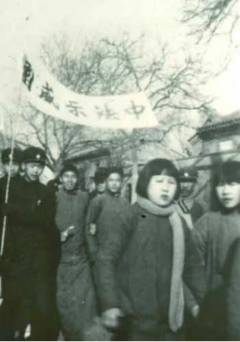 图为北平大中学生数千人冲上街头,举行声势浩大的游行示威