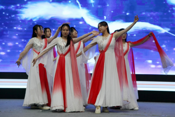 随后,与会人员共同观看了由现代服务系团总支精心准备的文艺节目舞蹈《青春如火》、歌伴舞《灯火里的中国》,同学们精彩的演出,引起全场观众的阵阵掌声。大会在合唱中国共产主义青年团团歌《光荣啊,中国共青团》中圆满落幕。