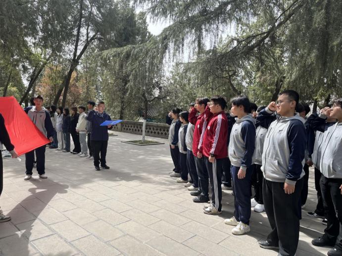 在鲜艳的党旗下,党员们重温入党誓词,铮铮誓言在陵园上空久久回荡,彰显着党员们不忘初心、牢记使命的坚定信念。在团旗下,团员们也重温了入团誓词。