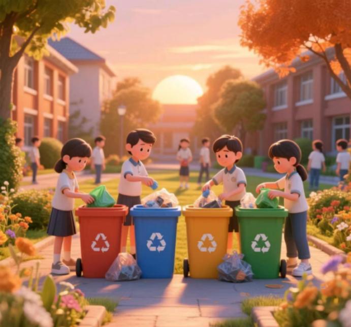 垃圾分类:准确分类投放生活垃圾,特别是废纸、塑料瓶、旧电池、电子垃圾等可回收和有害垃圾。实训产生的可回收废旧材料,鼓励进行创意改造或安全回收。