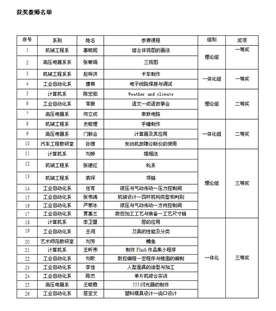 西安技师学院2011年课堂教学竞赛获奖名单