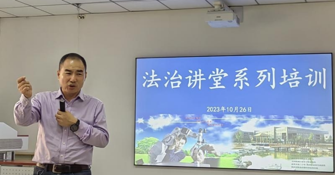 为进一步强化管理,增强依法治校能力,提高全员法治意识和法治素养,不断提升学院治理水平,10月26日,学院第一期法治讲堂在办公室的精心准备下如期举行。学院领导班子成员、全体中层干部、主管参加培训,培训由副院长徐晓英主持。