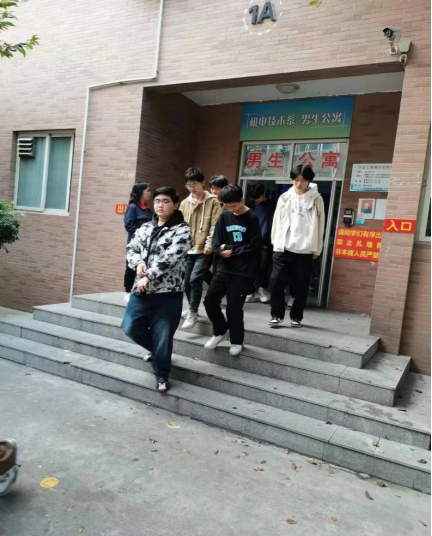 随着演练警报拉响,疏散演练正式开始,师生们按照安全疏散路线,在应急管理人员、班主任、辅导员的指挥下迅速有序撤离,在疏散安全场地进行集中,各班班主任迅速清点本班学生人数,并汇总上报。