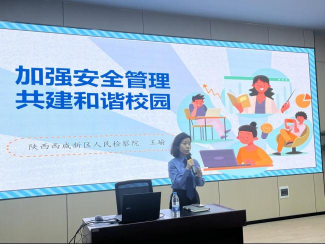 培训活动中,学院校外法治导师、陕西省西咸新区检察院王瑜作了题为《加强安全管理共建和谐校园》的专题报告。她凭借丰富的司法实践经验,从未成年人保护的实践反思入手,深入解读现行未成年人学校保护相关法律政策,并从司法工作者的独特视角,详细阐述校园安全管理的制度安排、工作要求和处置对策。王瑜的报告培训主题鲜明、内容翔实,紧密结合学院安全工作实际,具有很强的针对性、指导性。
