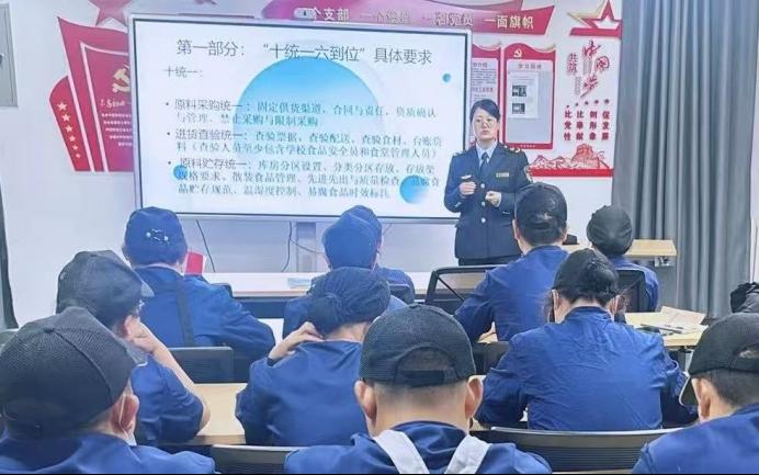 培训围绕校园食品安全特点,讲解“十统一、六到位” 内容以及食材采购、储存、加工、餐具消毒、人员健康管理等关键环节注意事项。她提醒,采购需严审供应商资质、检查食材外观与保质期,确保新鲜无变质;储存要按类别、温度分类存放,防交叉污染;加工须守规范、烧熟煮透,避免食物中毒;餐具消毒需依标准流程。此外,培训还结合实际案例阐述食品安全事故的严重后果,强调规范操作的重要性。