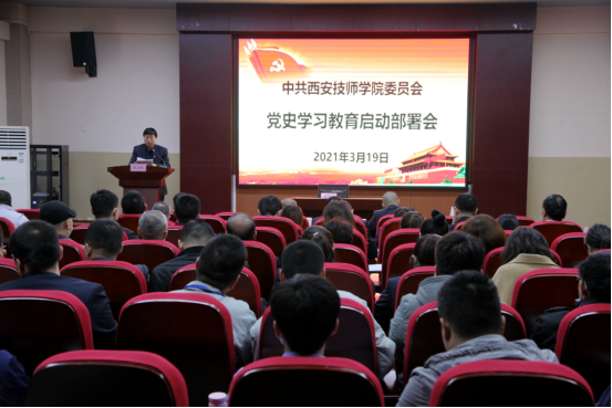 3月19日下午,西安技师学院党史学习教育启动部署会在C座302报告厅举行,会议贯彻落实习近平总书记在党史学习教育动员大会上的重要讲话精神,按照中国西电集团党委部署和要求,安排部署了学院党史学习教育工作。技师学院党委书记、院长范孝红作动员部署讲话,党委委员、副院长冯小平主持会议,学院领导班子成员及全体在岗党员参加了会议。