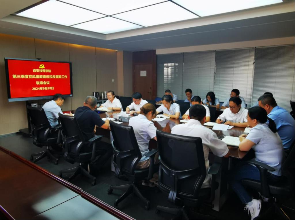 会议组织大家集中学习了习近平总书记关于党风廉政建设和反腐败斗争重要论述、党的二十届三中全会精神;传达了中国西电集团纪委第三季度纪检系统交流座谈会会议精神。职能部门负责人代表对第三季度本部门承担的监督工作情况进行了汇报,并就学院党风廉政建设和反腐败工作提出意见建议;各党支部书记汇报了支部廉洁文化建设工作推进情况以及对支部所属各部门“小微权力”关键岗位日常监督及廉洁教育情况。
