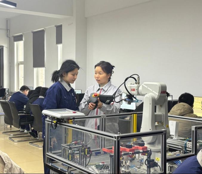 当智能制造的时代脉搏与教育初心同频共振,人工智能党小组的刘萍老师以代码为梭、以算法为线,在数字化转型的浪潮中编织着育人与创新的双重经纬。以炽热的科研信仰与柔软的教育情怀,深耕在我院智能制造领域。刘萍老师胸前的党徽与ABB操作台闪烁的指示灯交相辉映,在她身后,一群年轻学子正通过脑机接口调试智能模型,仿佛跃动着“中国智造”人才成长曲线。她用行动诠释着这个时代最动人的方程式——当严谨的代码注入教育的温度,冰冷的机械也能生长出玫瑰的芬芳。